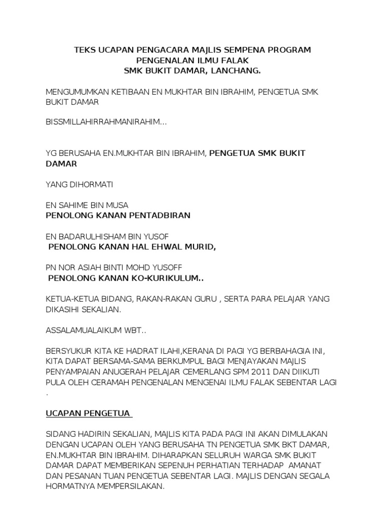 Teks pengacara majlis majlis sambutan maulidurras. Download Full PDF Package. Guru-guru dan murid-murid yang dikasihi sekalian.