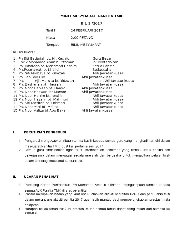 Minit Mesyuarat Panitia Tmk Kali Pertama Pdf