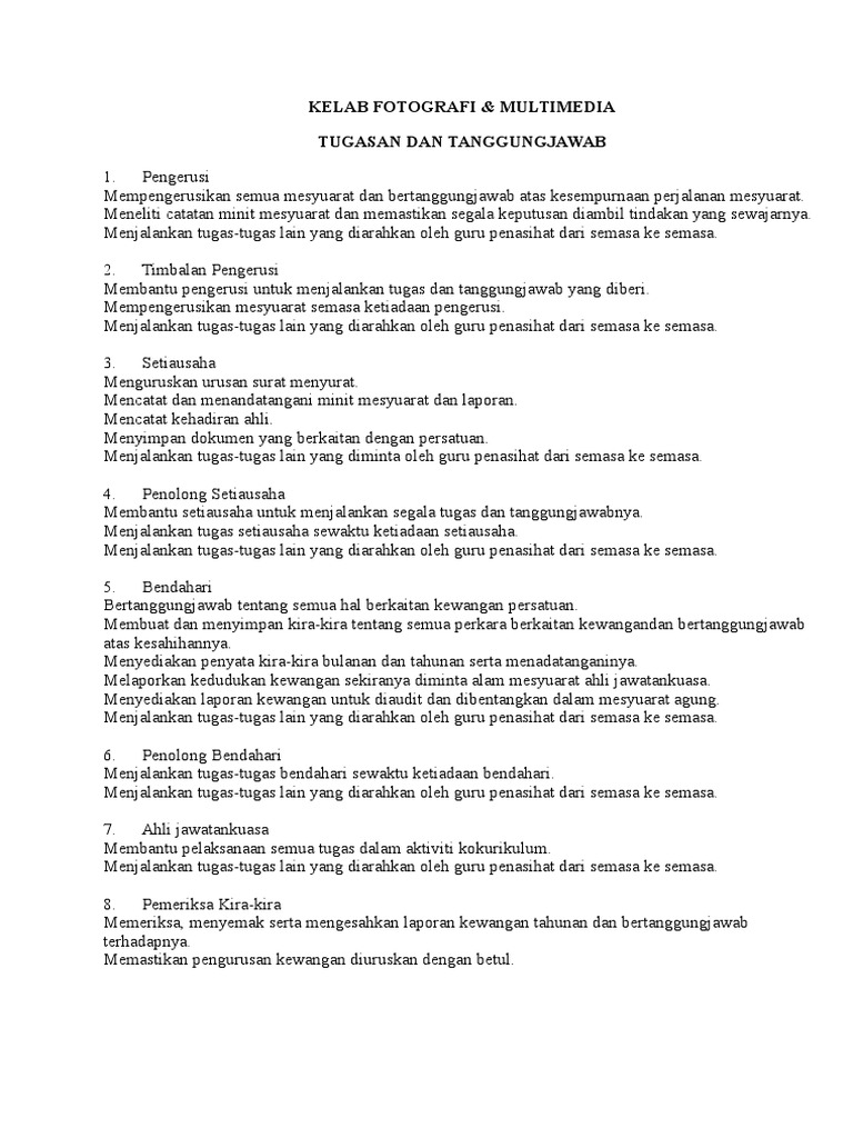 Senarai Tugas Ajk Kelab Fotografi Majalah Sekolah Pdf