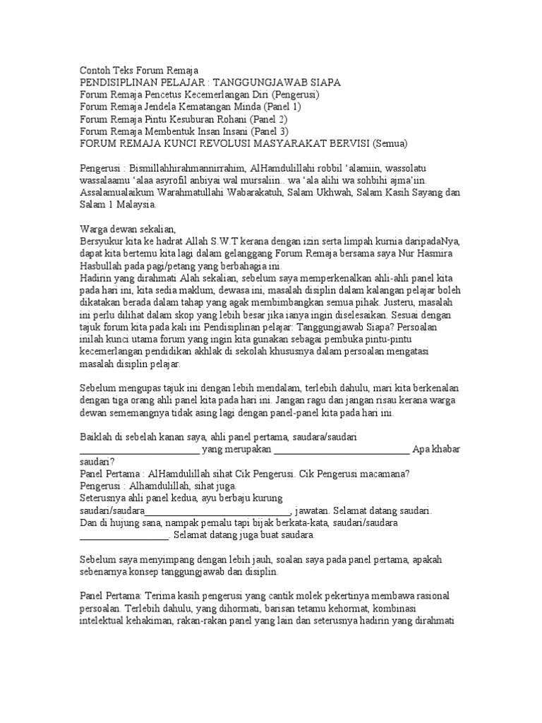 Contoh Skrip Pengerusi Majlis Forum Remaja Sekolah Menengah Pdf