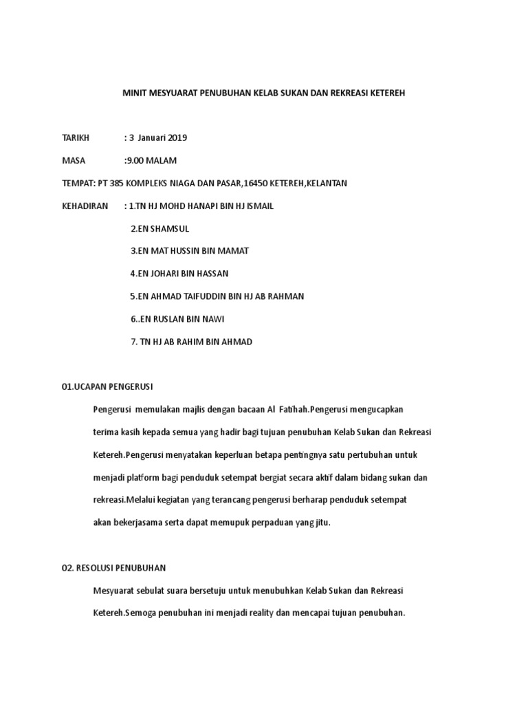 Contoh Minit Mesyuarat Penubuhan Kelab Sukan Dan Rekreasi Pdf