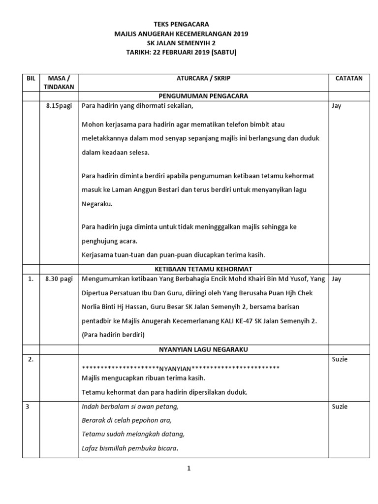 Teks pengacara majlis. BROSUR DAN PAMPLET UNTUK PROGRAM SEKOLAH MALAYSIA. Berumur tahun dan telah mempunyai keluarga.