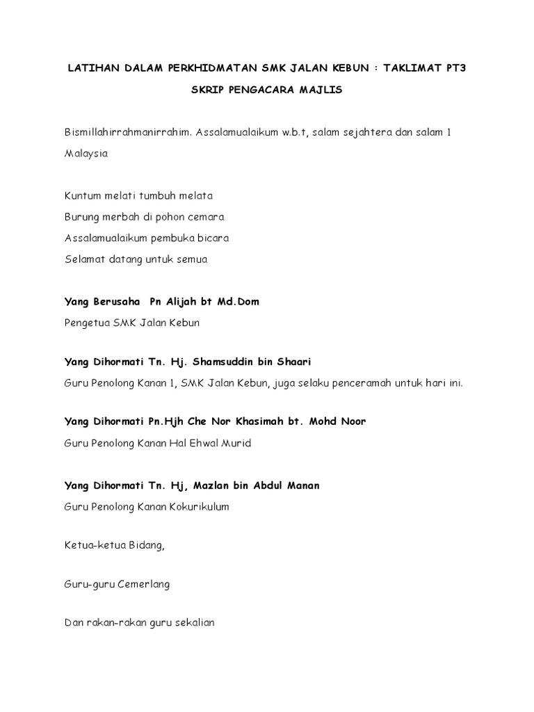 Teks Ucapan Pengacara Majlis Orientasi Pdf
