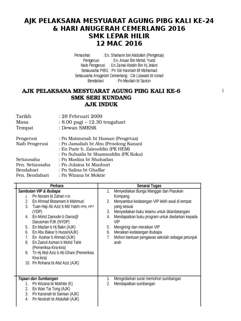 Setiausaha 31 Mencatat minit mesyuarat dan mengedarkannya kepada ahli. Contextual translation of penolong pengerusi kelab landskap into English. The English Panel of SK Guar Lobak is made up of 15 experienced English teachers.
