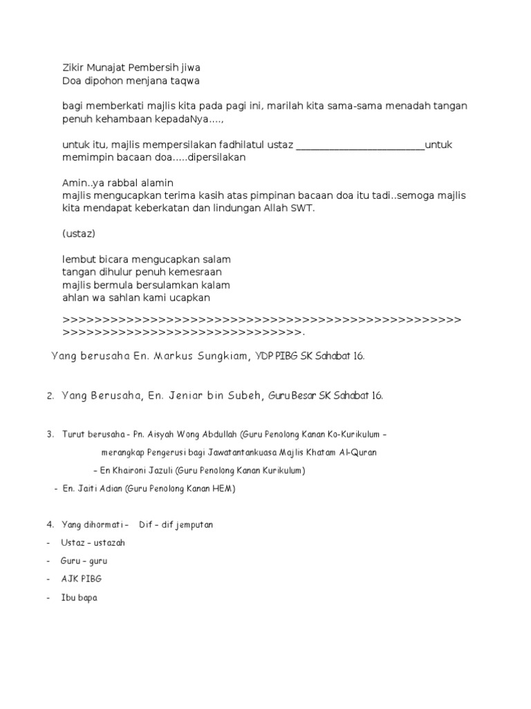 Ucapan atau panggilan kepada hadirin di tengah-tengah ucapan. Dengan ini majlis menjemput Yang Berusaha Prof Madya Dr. Kata kata aluan dalam buku program mesyuarat agung pibg smkpbp 1 assalammualaikum.
