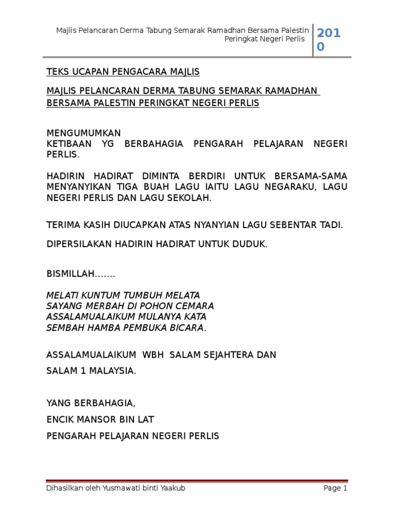 Teks Ucapan Pengacara Majlis Derma Palestin Pdf