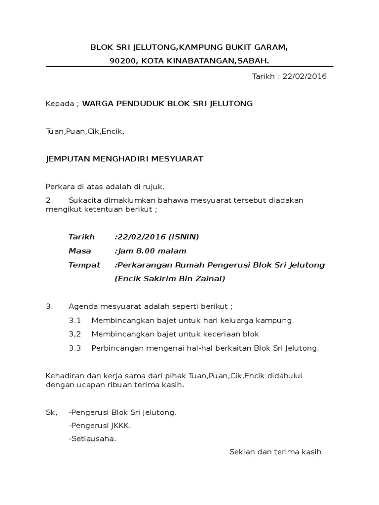 Pengerusi juga mengucapkan terima kasih kepada semua ahli yang dapat meluangkan masa hadir pada mesyuarat yang diadakan kali ini. Contoh Surat Pengesahan Jkkk Sokongan untuk penganjuran ekspo jualan karnival riang ria salam sejahtera diucapkan kepada pihak tuan harapan kami agar tuan berada dalam keadaan sihat selalu di dalam menjalankan tugas seharian. Jkkk kg panchor no comments.