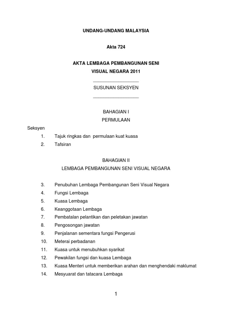 Akta Balai Seni Visual Negara 1959 Akta 516 Pdf