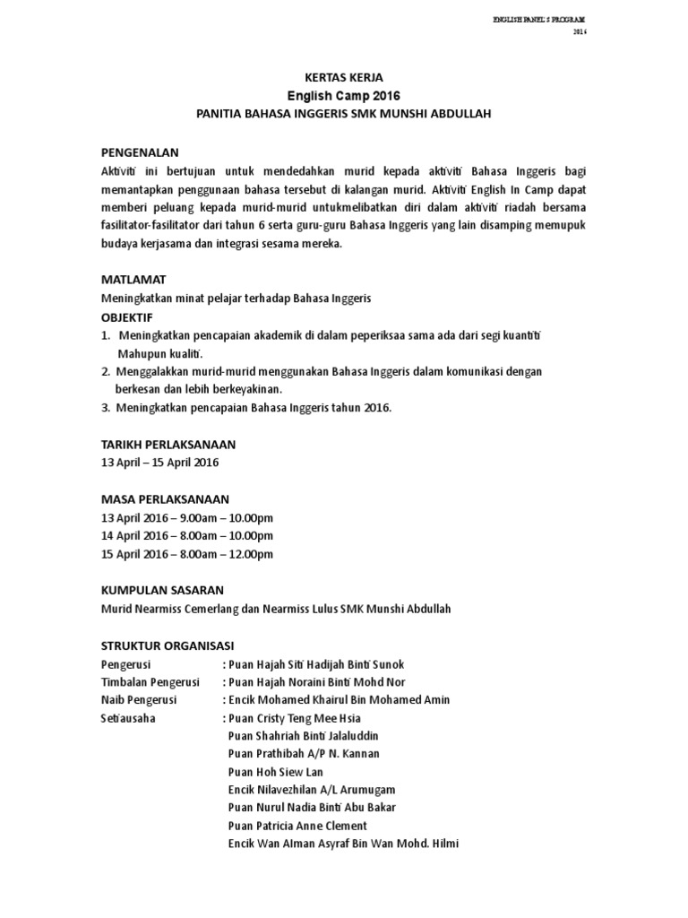 6 Kertas Kerja English Camp 2016 Pdf