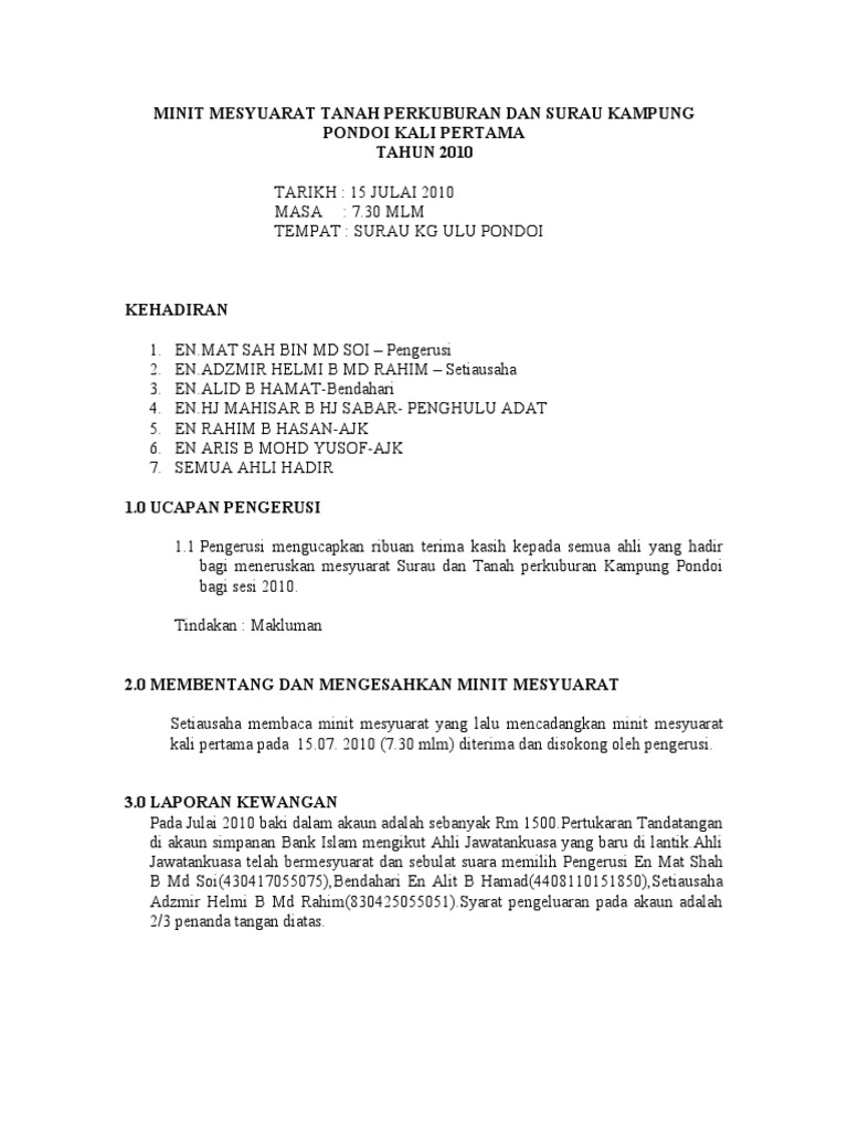 Minit Mesyuarat Surau Pondoi Pdf