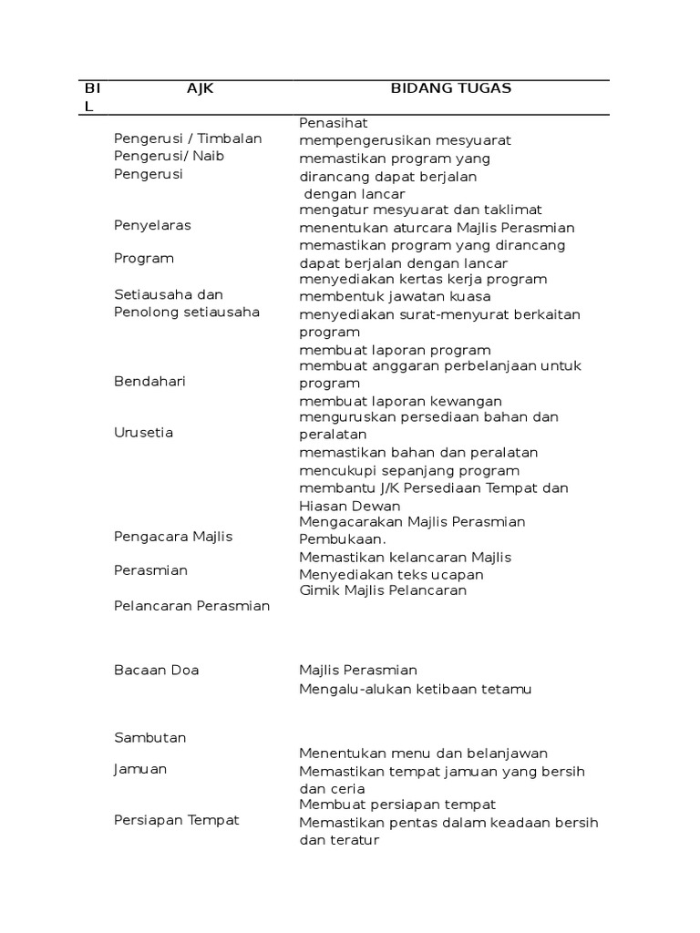 9 Senarai Tugas Jawatan Kuasa Pengurusan Majlis Rasmi Pdf
