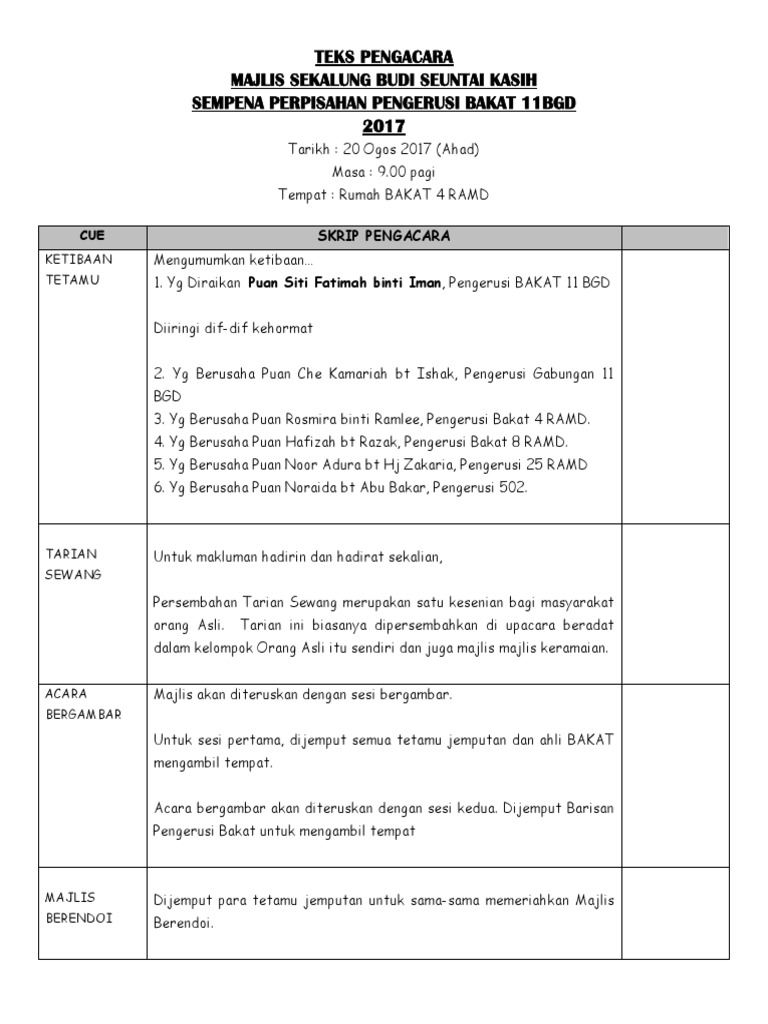 Teks Pengacara Majlis Perpisahan Pengerusi Bakat 11 Bgd Pdf